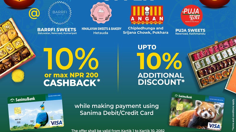 तिहार र छठपर्वमा सानिमा बैंकको योजना : यी पसलबाट मिठाई किन्दा १०% छुट पाइने