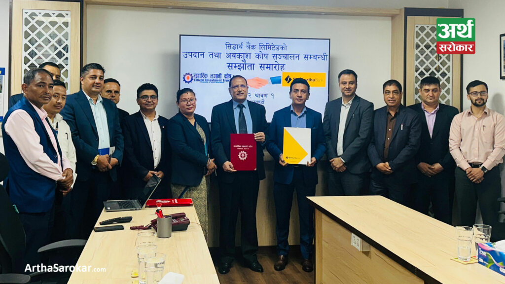 नागरिक लगानी कोष र सिद्धार्थ बैंकबीच उपदान तथा अवकाश कोष सञ्चालनसम्वन्धी सम्झौता भएको छ ।