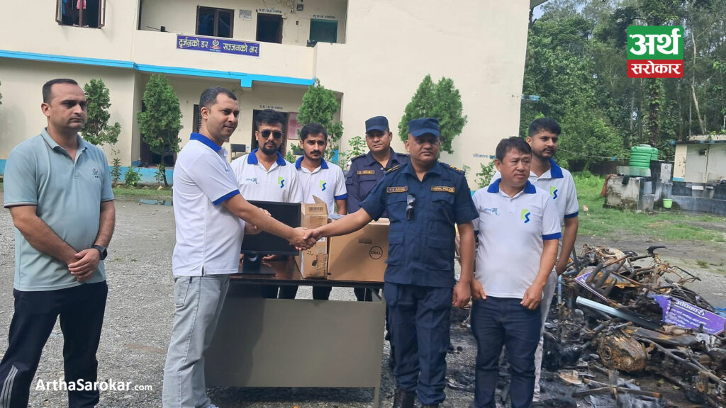 कामना सेवा विकास बैंकले मालपोत कार्यालय पुनर्निर्माण गरिदिने, प्रहरीलाई दियो कम्प्युटर