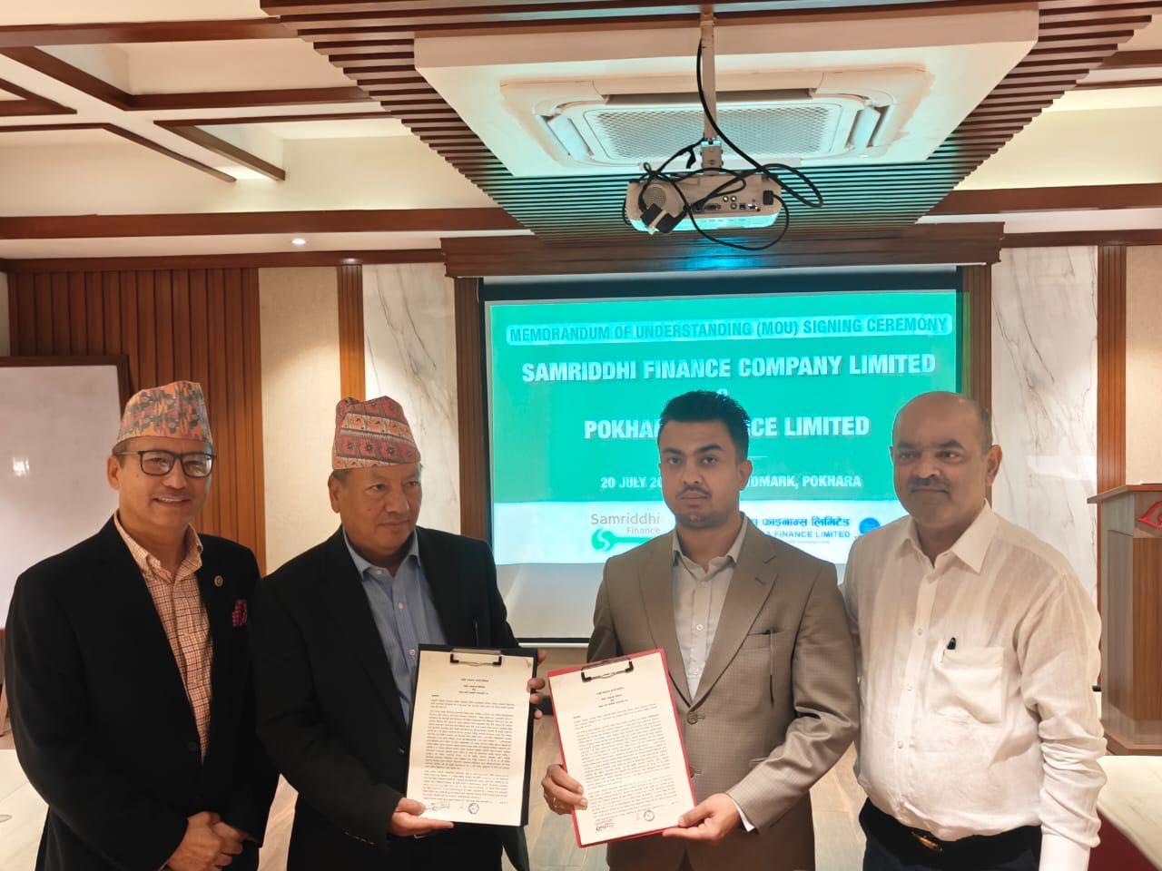 समृद्धी फाइनान्स र पोखरा फाइनान्सबीच मर्जर सम्झौता, मंसिरभित्र एकिकृत कारोबार गर्ने
