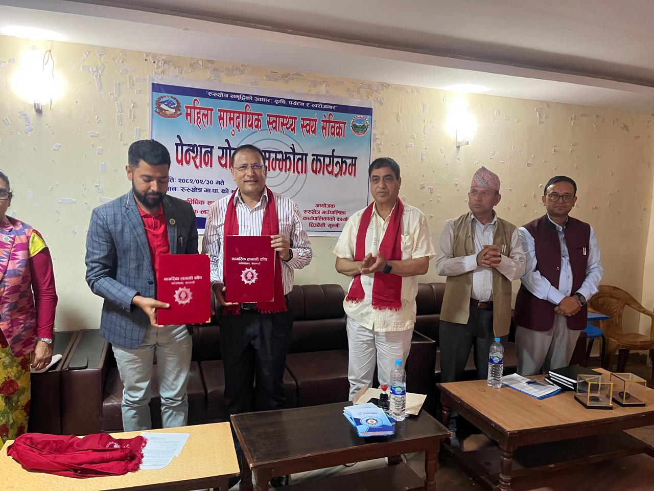 An agreement has been signed between Citizen Investment Fund and Rurukshetra Rural Municipality of Gulmi District to operate Citizen Pension Scheme for Women Community Health Volunteers.